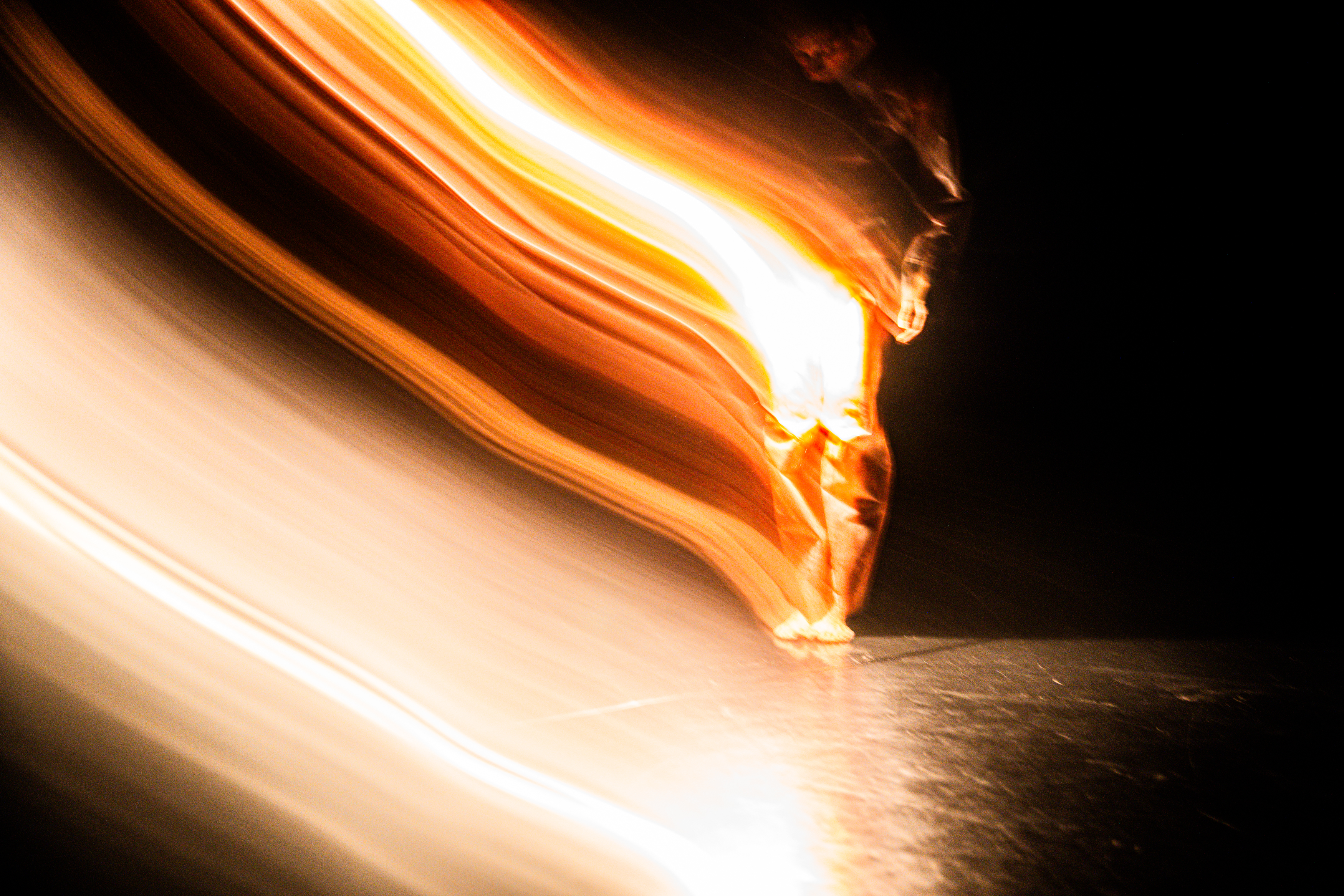I am searching. I am seaching for alternative experiences for both the performers and the audience. I explore new possibilities by playing with boundaries and choices, creating the mentioned space in this performance using light. This space opens up to various images. I find myself in an area where I experience the work while simultaneously performing it. Taking risks, being open to changes and surprises keeps me in the moment. I hope that the dynamic movement scores and the emerging images transform with the audience’s imagination, allowing the audience to become part of this experience with me.
